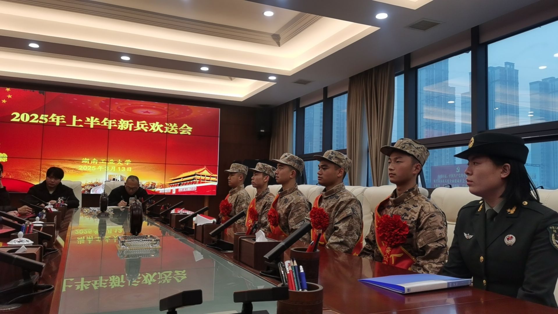 3月13日下午,湖南工业大学举行“2025年上半年新兵欢送会”活动,校党委委员、副校长范晓阳教授为即将踏上军旅征程的学子送去祝福与期许。生化学院生物技术2302班余昊锋同学正是其中一员。
